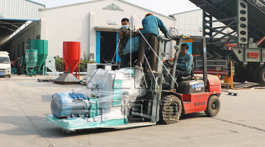 印尼(ní)350草粉顆粒機組發貨現場