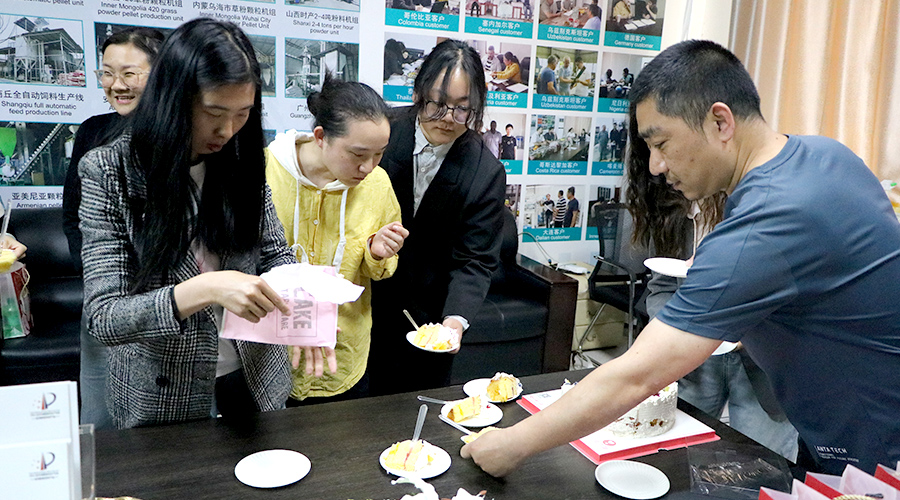 行政部為(wéi)壽(shòu)星們獻上了公司精心準備的生日蛋糕,大家齊唱生日歌,現場氣氛溫暖(nuǎn)而熱烈。