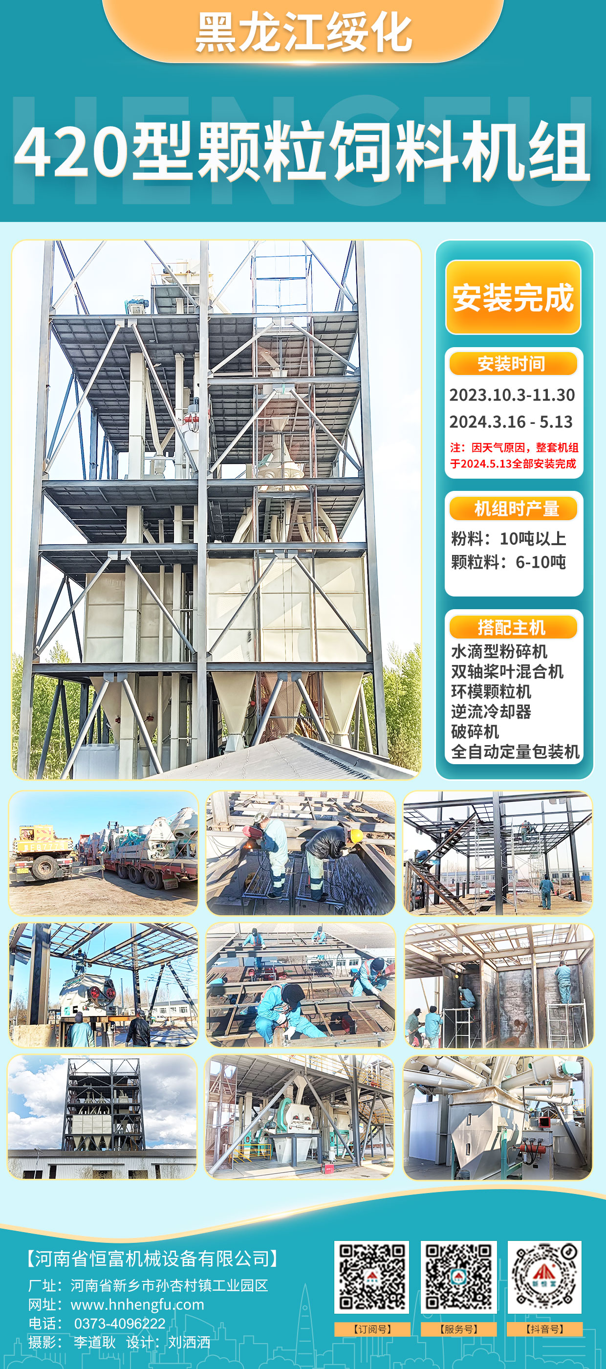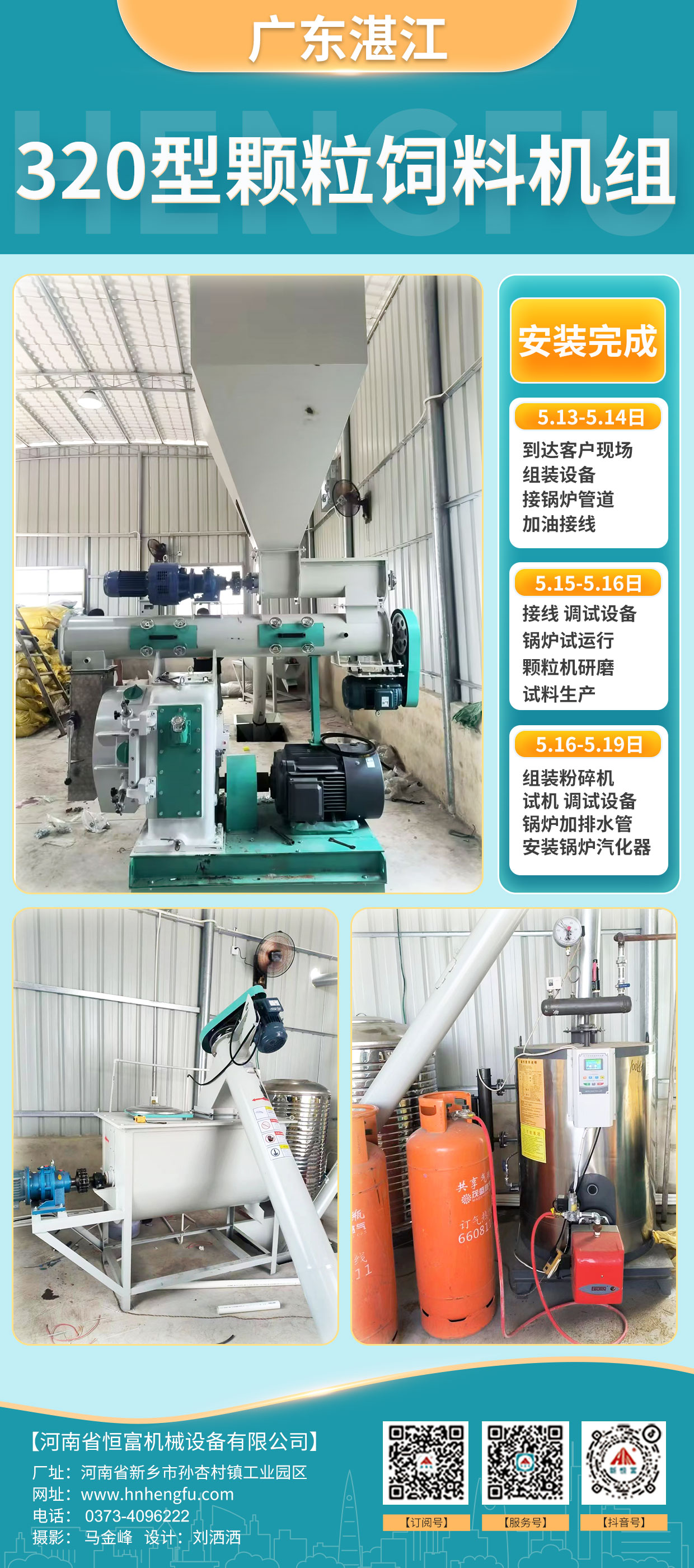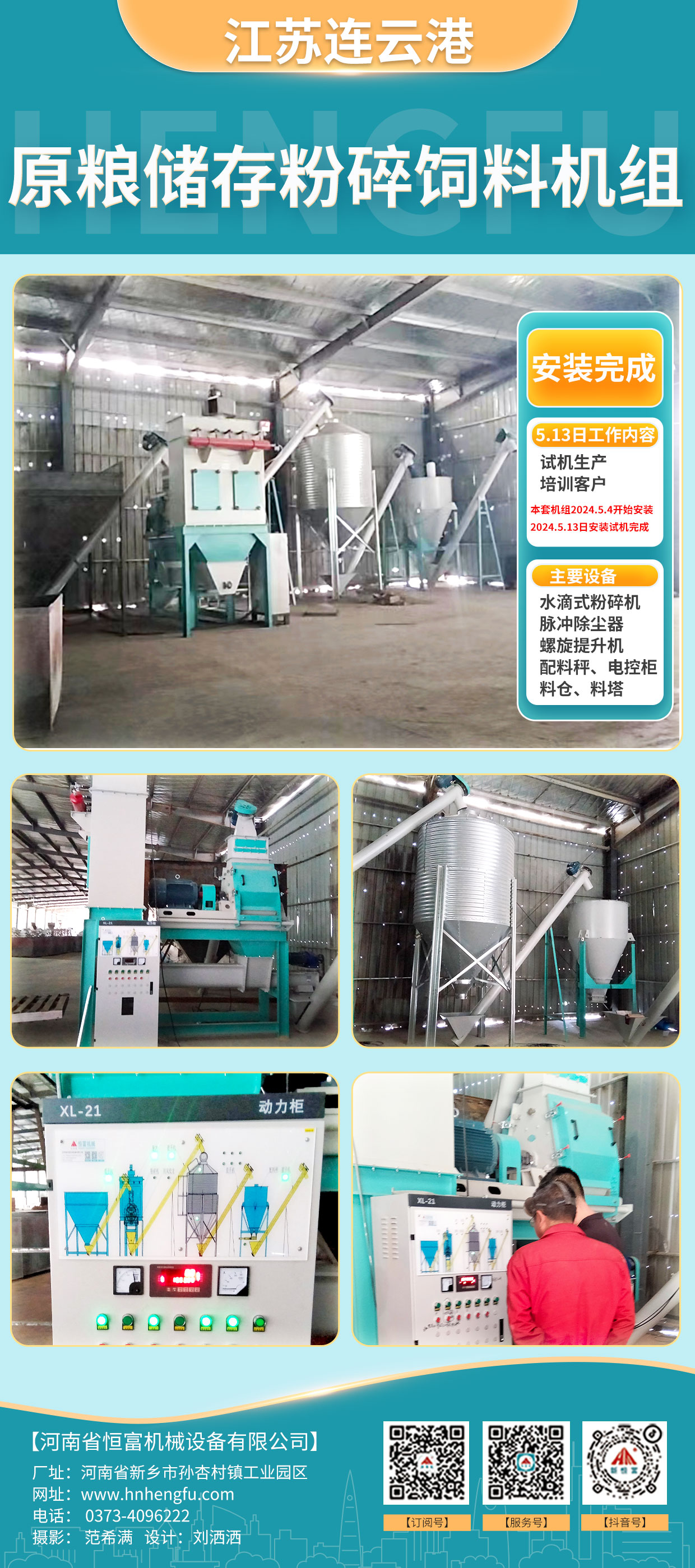 安裝完成的設(shè)備(bèi):黑龍江綏化420自動配料顆粒機組、江蘇連雲港原糧儲存粉碎飼料機組、廣東湛江(jiāng)320型顆粒飼料機組、江蘇鹽城水(shuǐ)滴型臥式粉狀飼料(liào)機組。