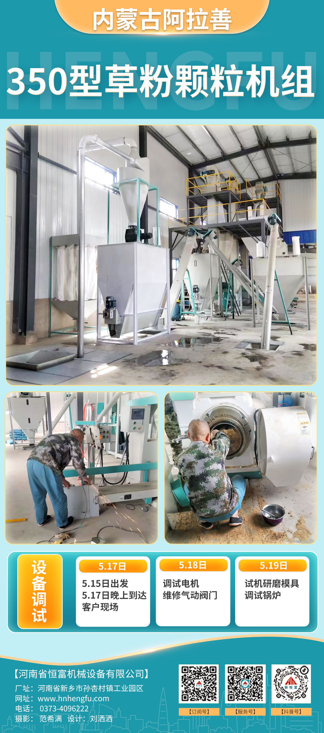 進行調試的設備:內蒙古阿拉善350草粉顆粒機組。