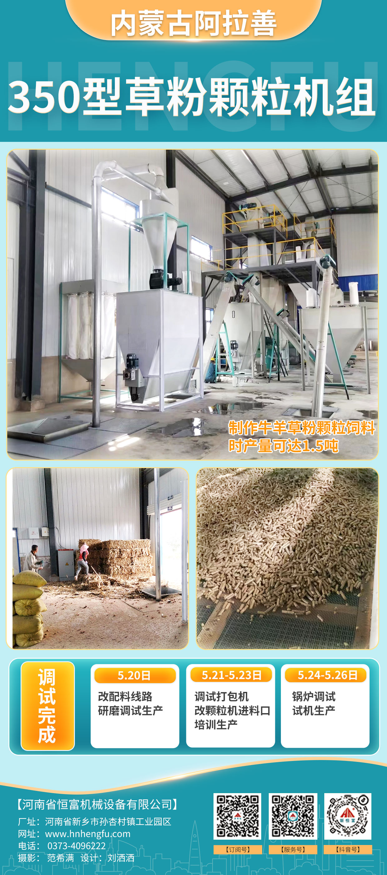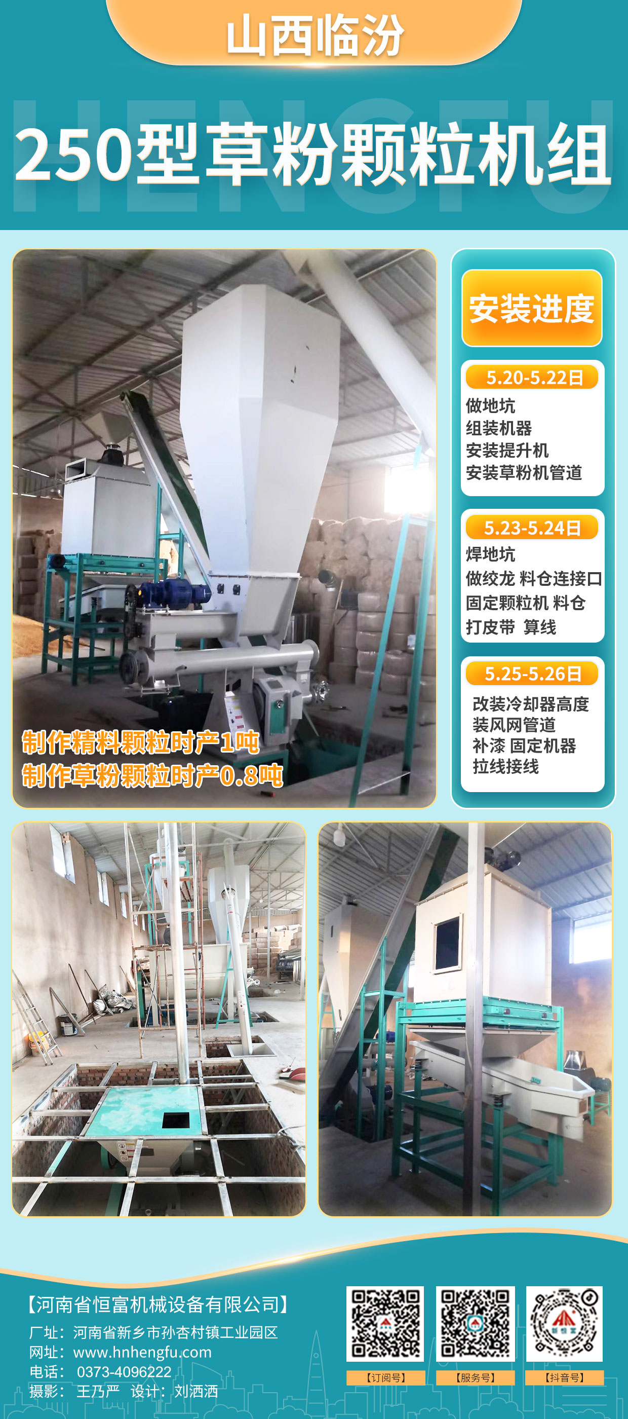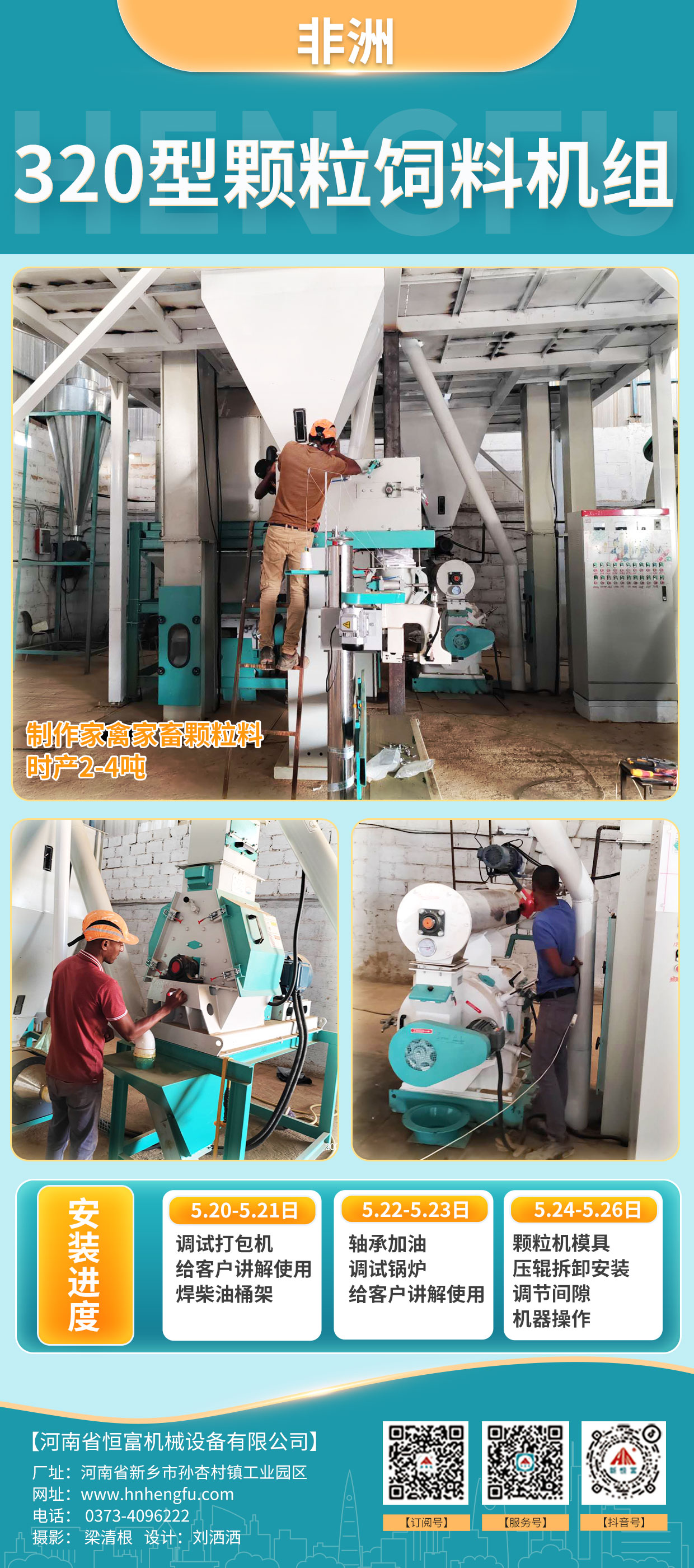 正在安裝的設備:非洲(zhōu)320型顆粒飼(sì)料機組、山西臨汾250型草粉顆(kē)粒飼(sì)料機組。