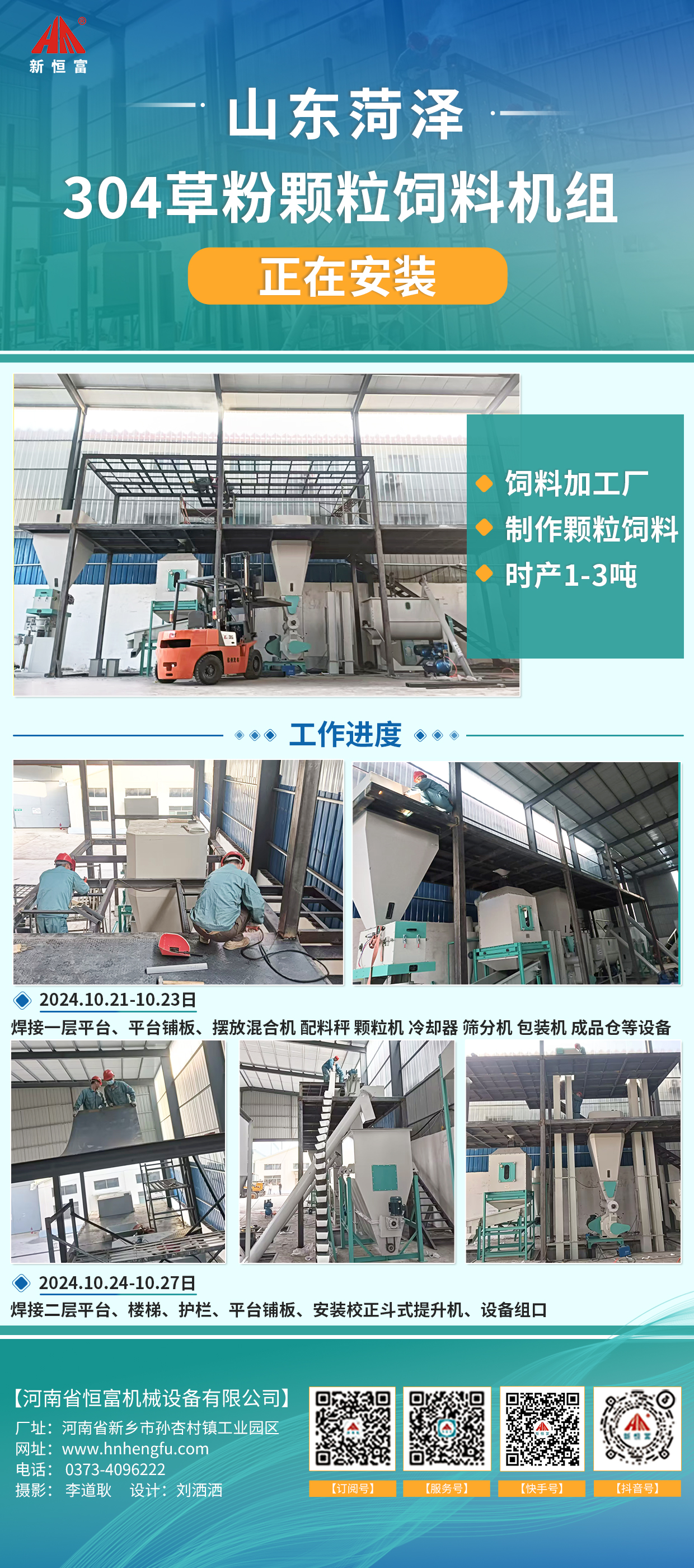 河南恒(héng)富機械-成套(tào)飼料加工設備安裝進度【2024-10-08】