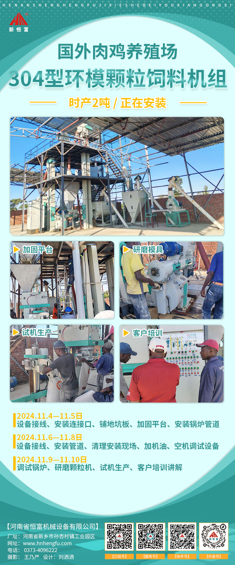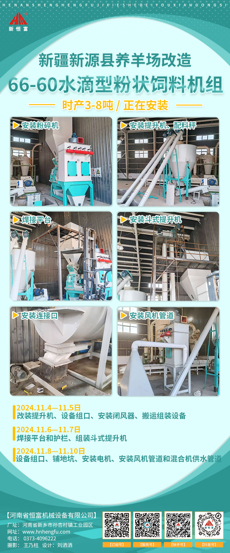河南恒(héng)富機械-成(chéng)套飼料加工設備安裝進度【2024-10-08】