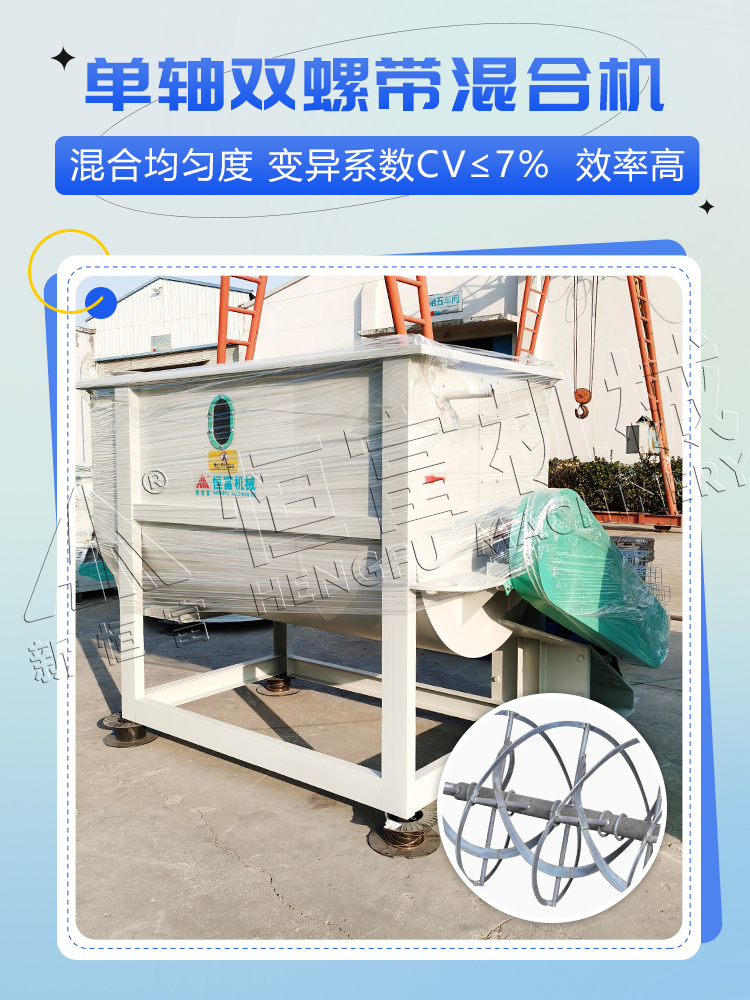 設備應用於多種領域,如:食品、化工、養(yǎng)殖、複合肥(féi)、幹粉等行業的粉狀、顆粒狀物料的高均勻度混合。