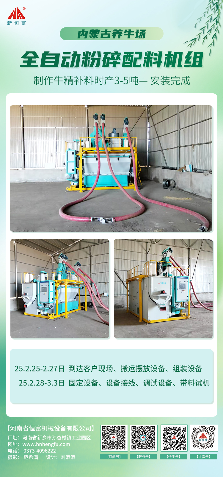 內蒙古烏蘭浩特養牛場,時產3-5噸全自動(dòng)粉碎配料生產線安裝完成。