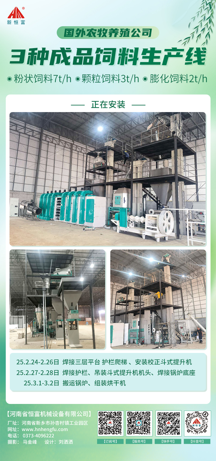 國外農牧養殖公司,時產2-7噸3種成品飼料生產線正在安裝。
