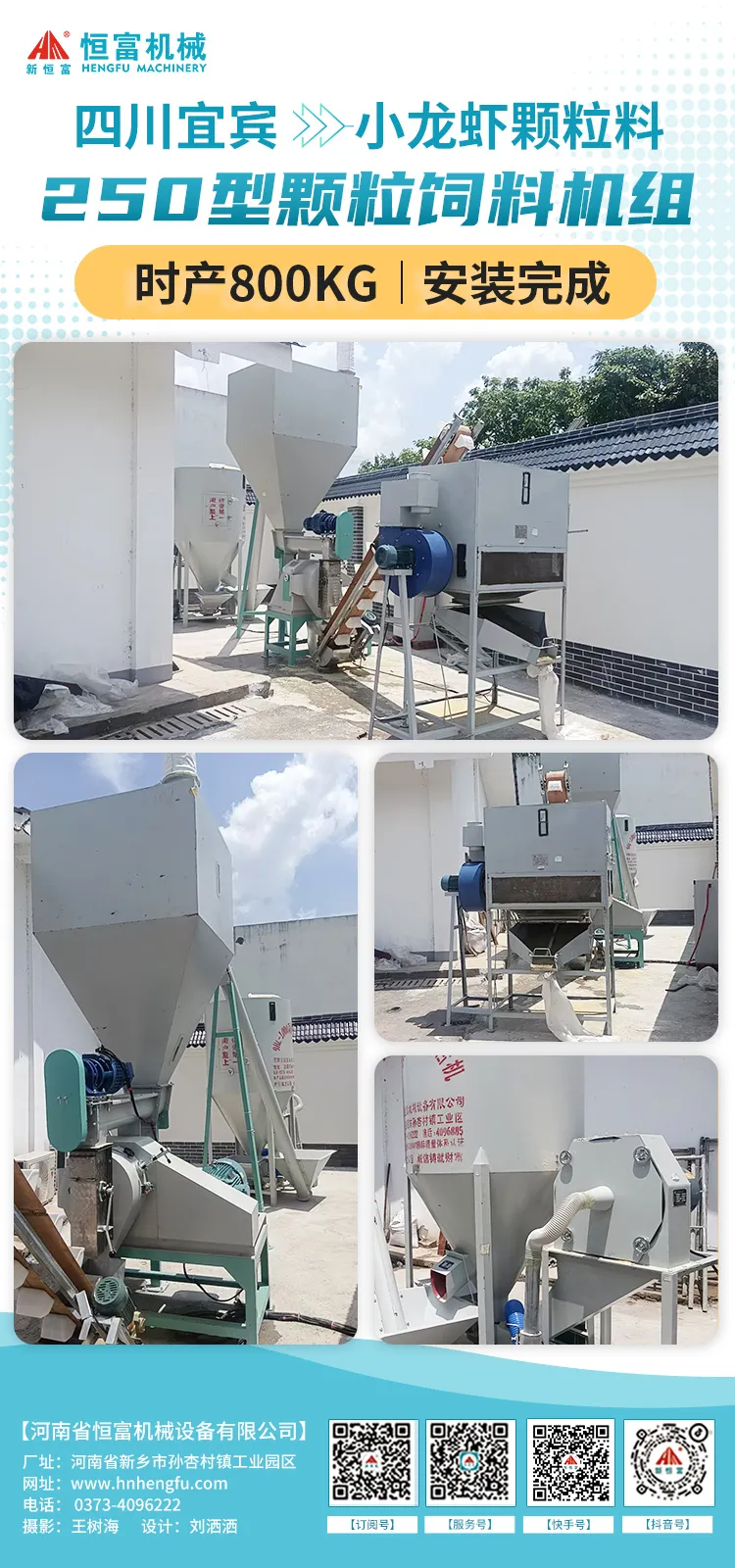 四川宜賓時產(chǎn)800公(gōng)斤小龍蝦顆粒飼料機組安裝完成。