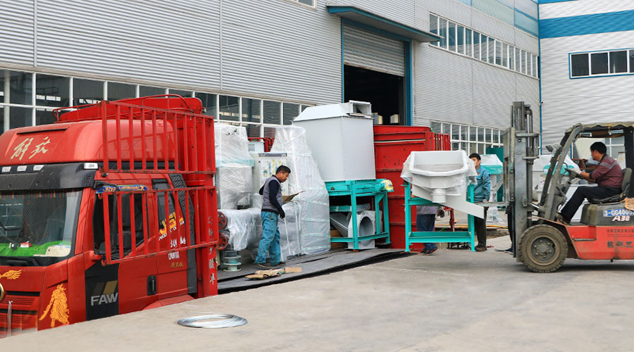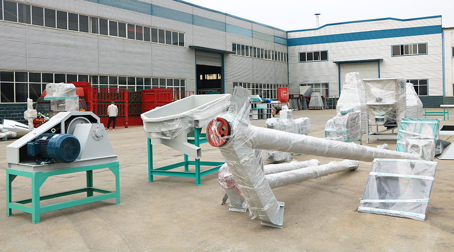 本次發貨(huò)的主要設備有:粉碎機、臥式雙(shuāng)螺帶攪拌機、雙(shuāng)層(céng)蒸汽調製器(qì)、250顆粒(lì)機、1.5方冷卻器、振動篩、打包機(jī)等一整條生產線設備。