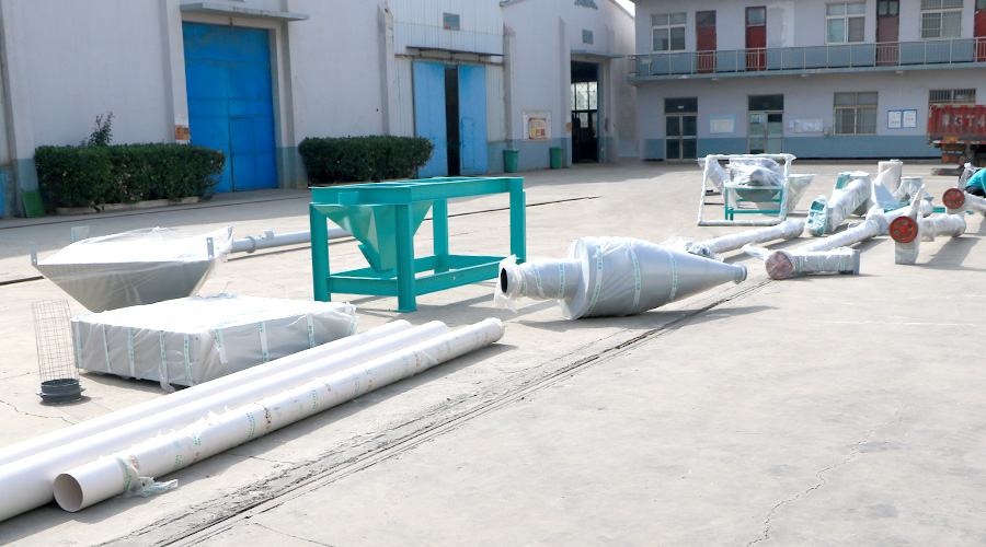 該套機組(zǔ)主(zhǔ)要由水滴式粉(fěn)碎機,沙克龍,布袋除塵器,成品儲存倉,噸包打包架,電櫃以及提升設備和其他配(pèi)件組成。