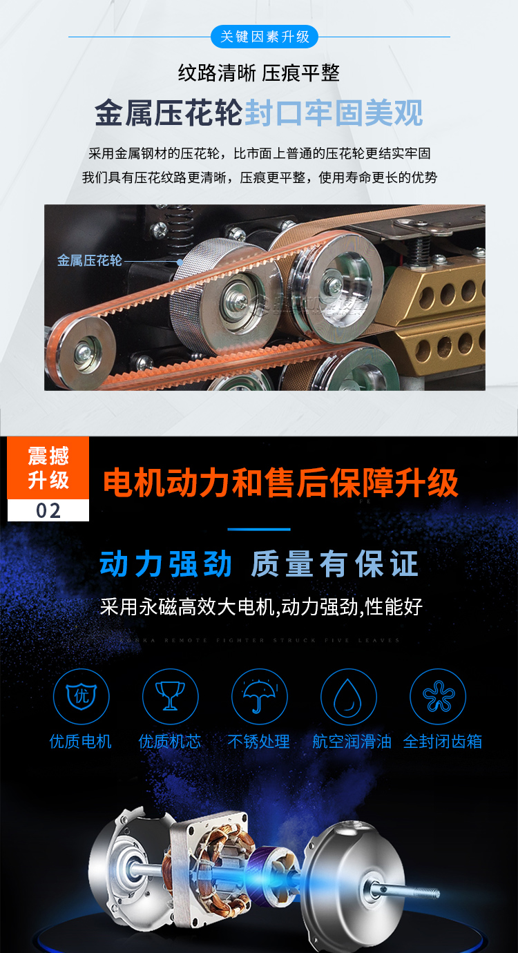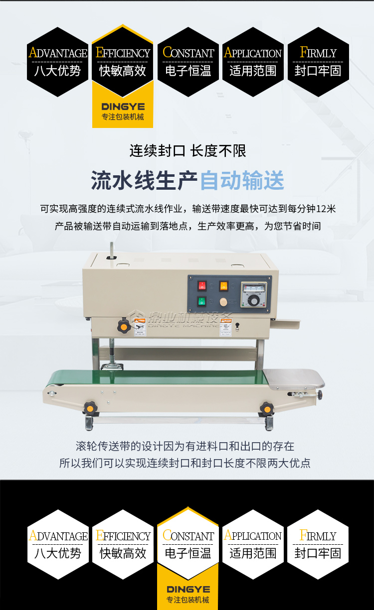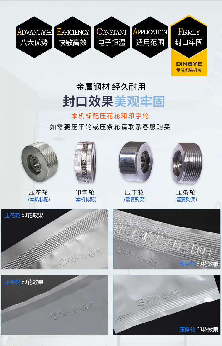 由於本機電氣(qì)控製簡單,合理而(ér)精製的機(jī)械傳動,從而結構性能非常穩定,故障率低,且使用(yòng)壽命更長。可長時間連續工作,能滿足大批量生產需求。產品經過該機的封口包裝後,且具外形美觀(guān)、整潔、防塵、防潮、防破損、便於搬運和(hé)儲存。大大降低產品的損(sǔn)耗,且具包裝成本 優勢。