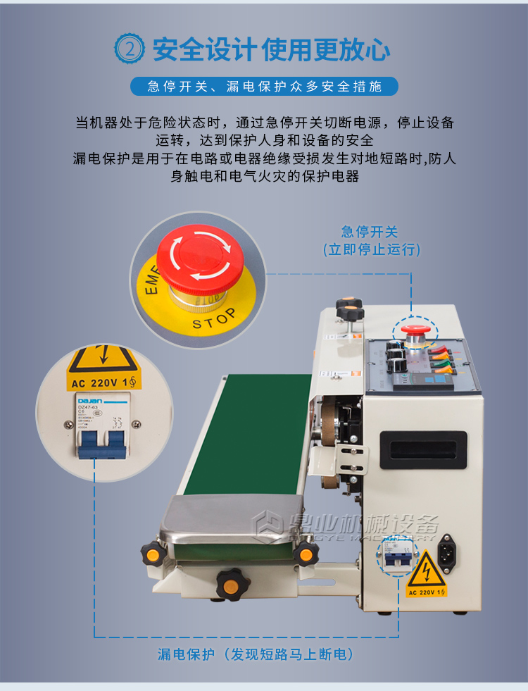 由於本機采用電子恒溫控製和無級調速的傳動機構,可封製各種不同材料的塑料包裝袋,由於本機體積小,應用廣(guǎng)泛,封口長度(dù)不受限(xiàn)製,所以可與各種包裝流水線配套使用。它將是(shì)工廠、商店批量產品包裝的(de)最佳封口設備(bèi)。