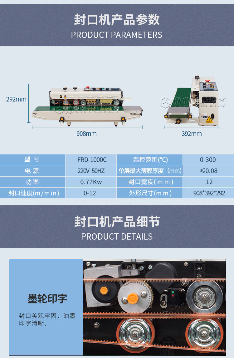 FRD1000C多功能墨輪印字封口機是(shì)根據(jù)《食品衛生法》中的食品標簽要求字跡有色、清晰、一目了然(rán)。