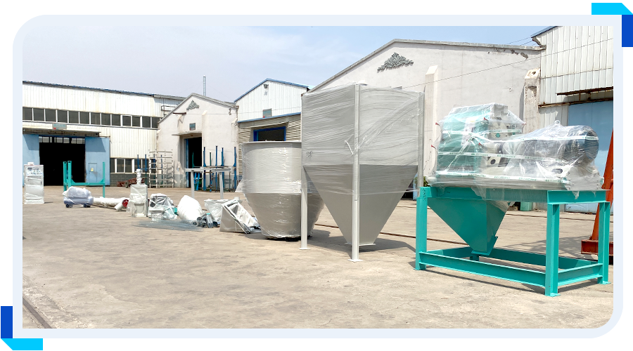 本次客戶是我們的老客戶轉介紹聯(lián)係上(shàng)我們的,主要(yào)是做牛羊精(jīng)補(bǔ)料(liào),要求(qiú)時產量(liàng)7噸左右。現搭配的這套粉料設備,是(shì)集自動配料、粉碎、混合、提(tí)升、除塵、為(wéi)一體的自(zì)動化飼料加工機組(zǔ)。