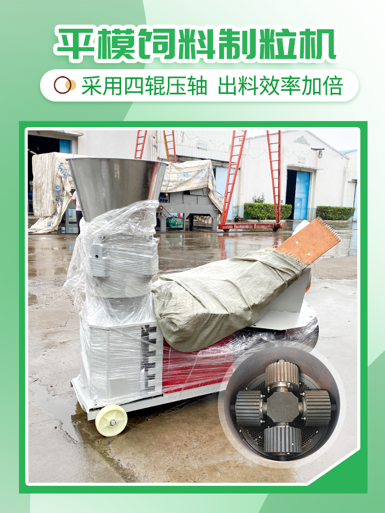 采(cǎi)用加厚高強度模(mó)具,四輪壓輥,不易(yì)磨(mó)損,加(jiā)大30kw電機,出料效率高(gāo),時產1500-2000kg。該機型備有1.5—12mm多種孔徑模具,適(shì)應不同物料、不同動物類型的製粒。