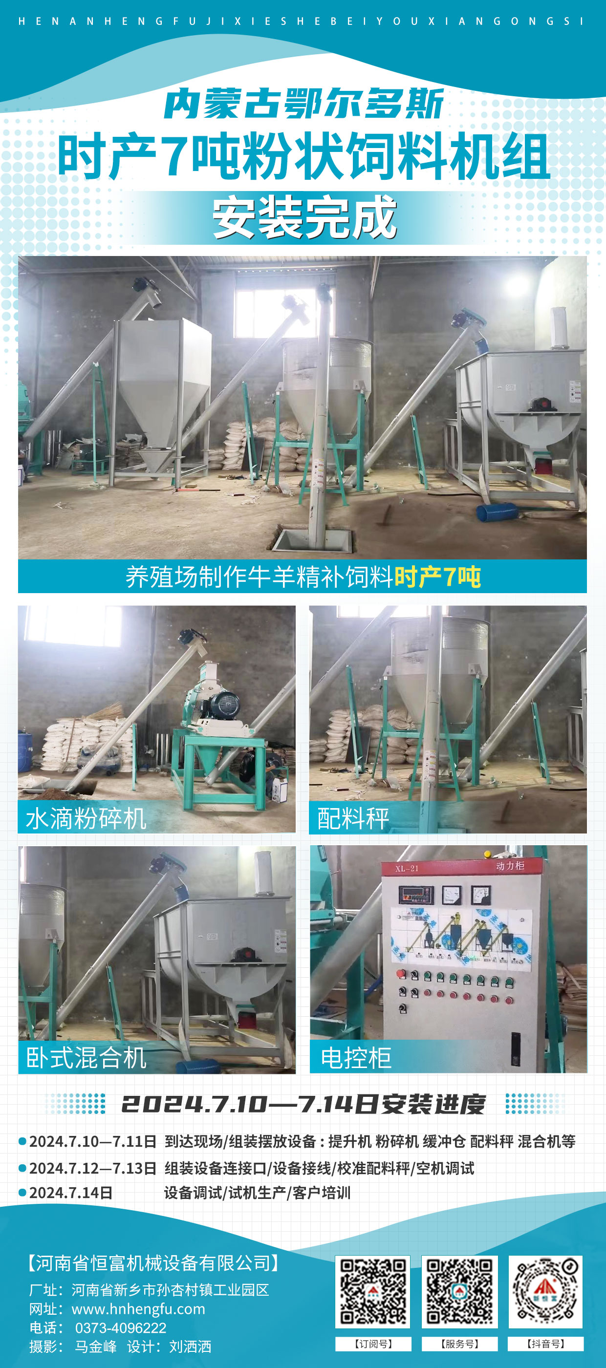 內蒙古鄂爾多斯市杭錦旗--時產7噸粉狀飼料加工(gōng)機組,現已裝好順利(lì)發車!