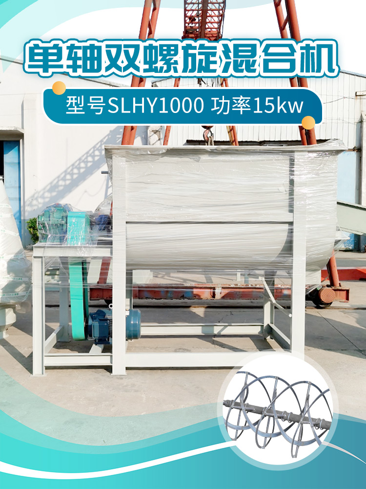 單軸雙螺(luó)旋混合機(jī)轉子采用主軸帶(dài)動雙層環帶狀螺旋葉片,其攪拌時(shí)間短、生產效率高,混合均勻度好,適應範圍廣,通用性強(qiáng),常用於大、中、小型飼料廠、養殖場。