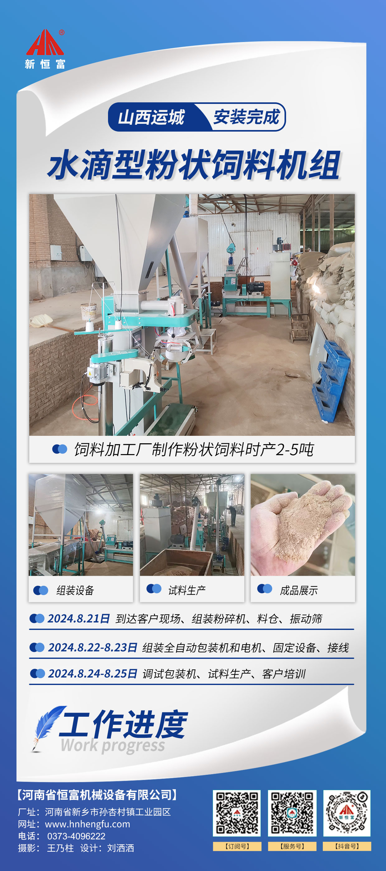 河南恒(héng)富機械-成套飼料加工設備安裝(zhuāng)進度【2024-08-13】