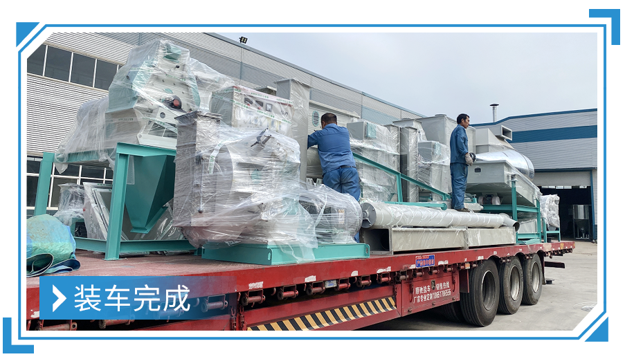 廣東汕(shàn)尾(wěi)--時產3-5噸粉狀飼料加工機組,現已裝車完成,順利發走!