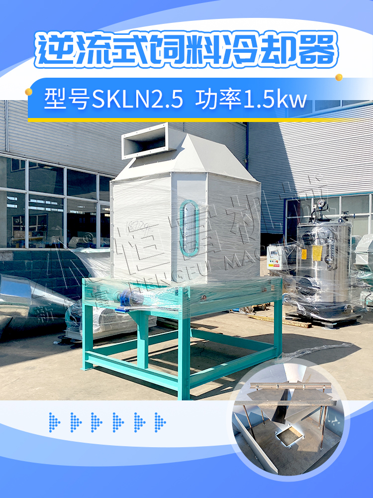 冷(lěng)卻後溫度不高於室(shì)溫3℃~5℃,水份降到12.5%-14%以下,專為(wéi)搭配(pèi)各種成套顆粒飼料機(jī)組使用設計生產。