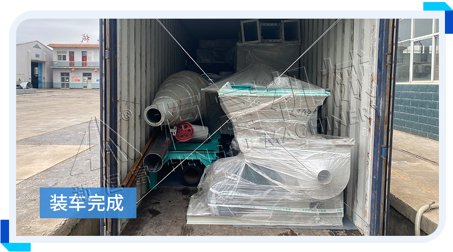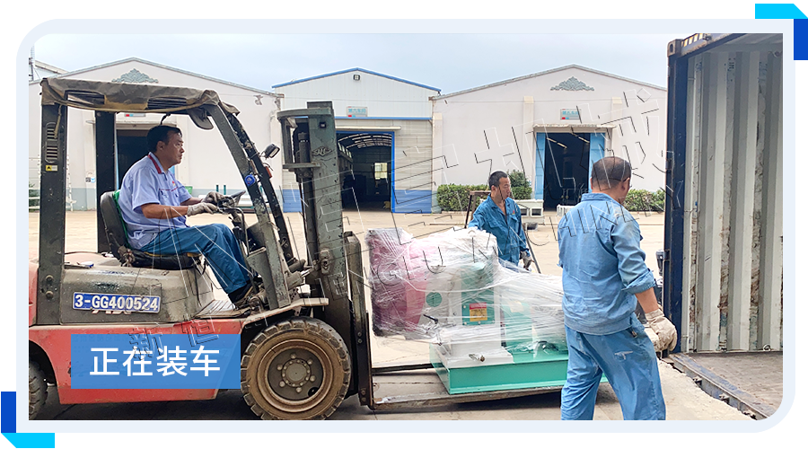 黑龍江綏化(huà)--養鵝場訂購環模250型顆粒飼料機組,已裝車完成,順利發走!