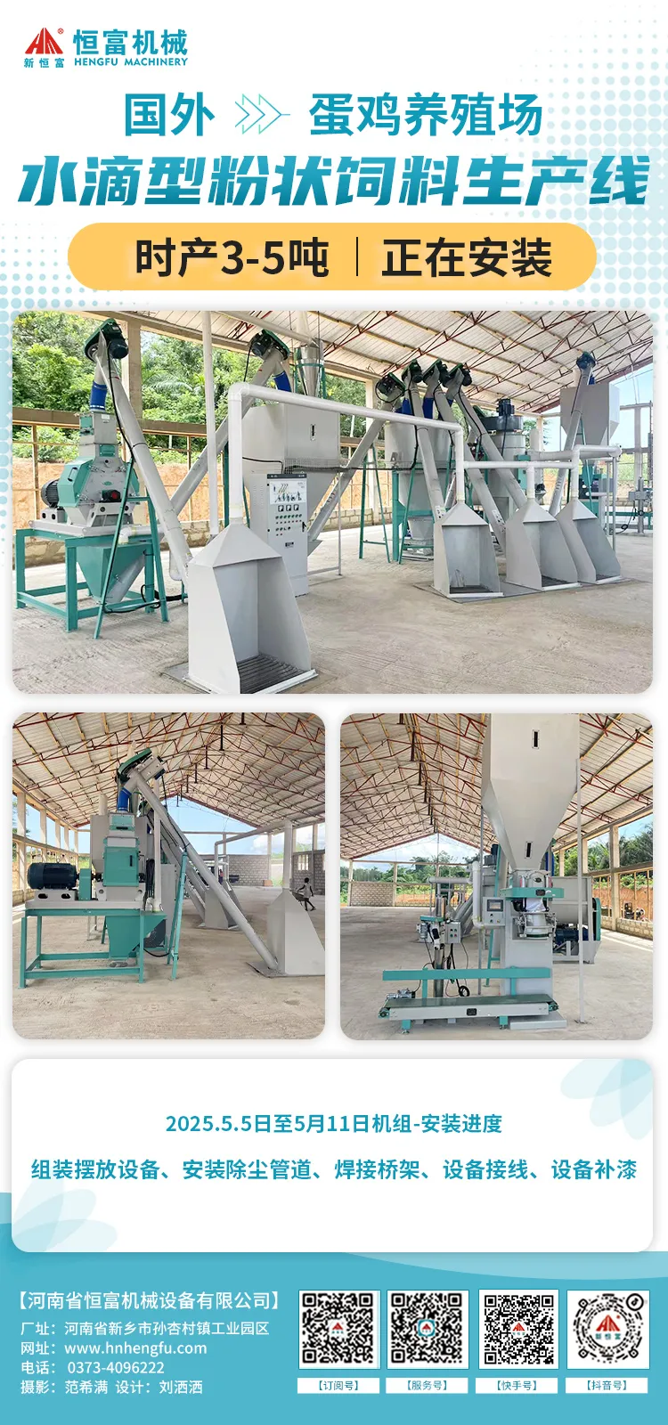 河南恒(héng)富機械-成套飼料加工設備安裝進度【2025-3-18】