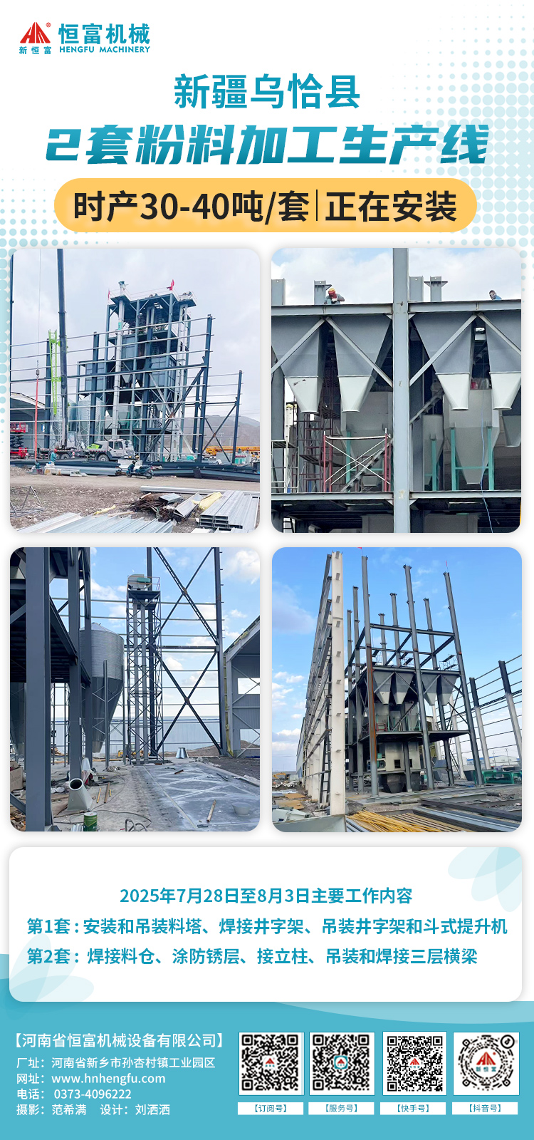 2025 年 7 月 28 日至 8 月 5 日主(zhǔ)要工(gōng)作:清理場地、檢查設備並做好準備工作,陪同采購螺(luó)絲、打包線等物料,檢修並刷漆(qī)設備、接氣管,完成鋼板倉(cāng)起吊、原料(liào)欄裝載及地坑水清理等(děng),同步向客戶講(jiǎng)解設(shè)備原理、使用與保養(yǎng)知識等。