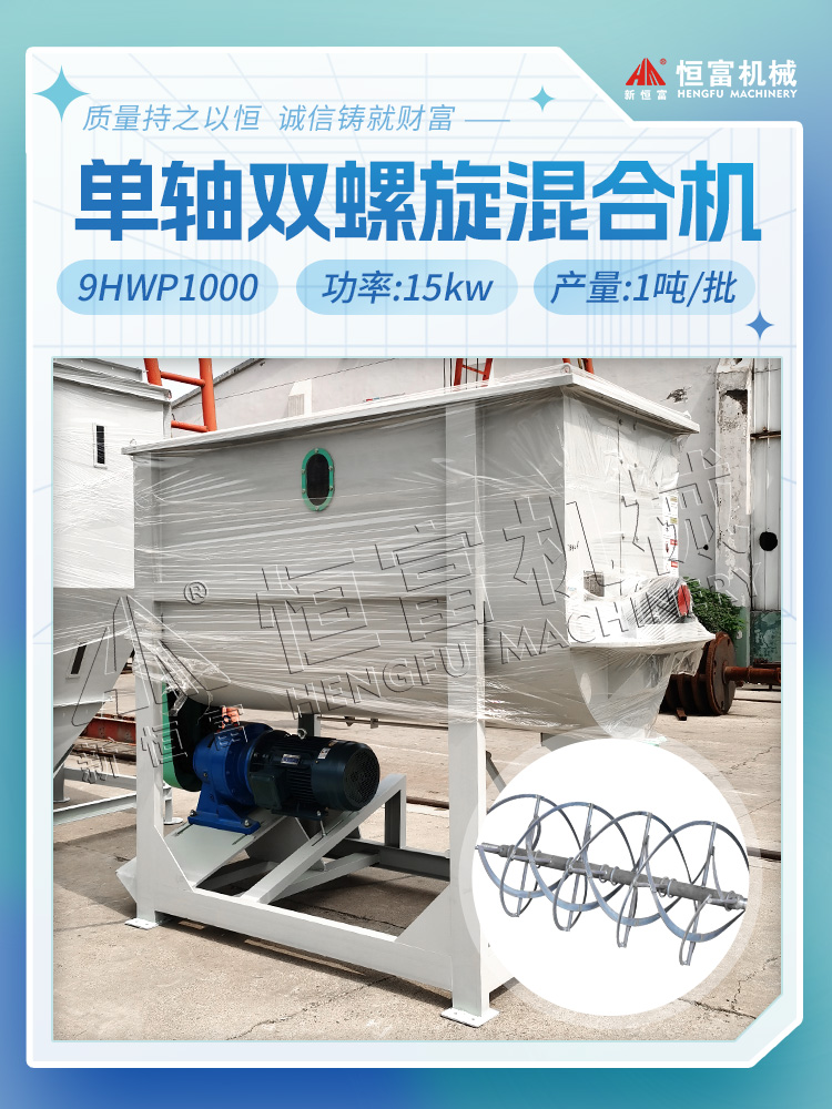 單軸雙螺帶混(hún)合機(帶稱重係統): 獨特的雙螺帶設(shè)計使混合均勻度高,速度快。配套稱重係統,可實現批次重量的精確(què)控製,保證配比(bǐ)精準(zhǔn),杜絕浪費。