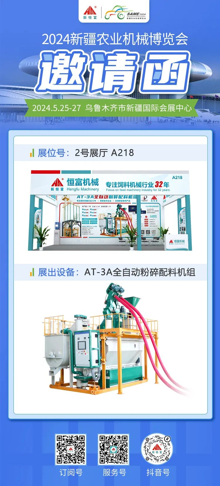 2024新疆農業機(jī)械博覽會將於5月25日-27日在(zài)烏魯木齊市新疆國際會展中心舉辦。