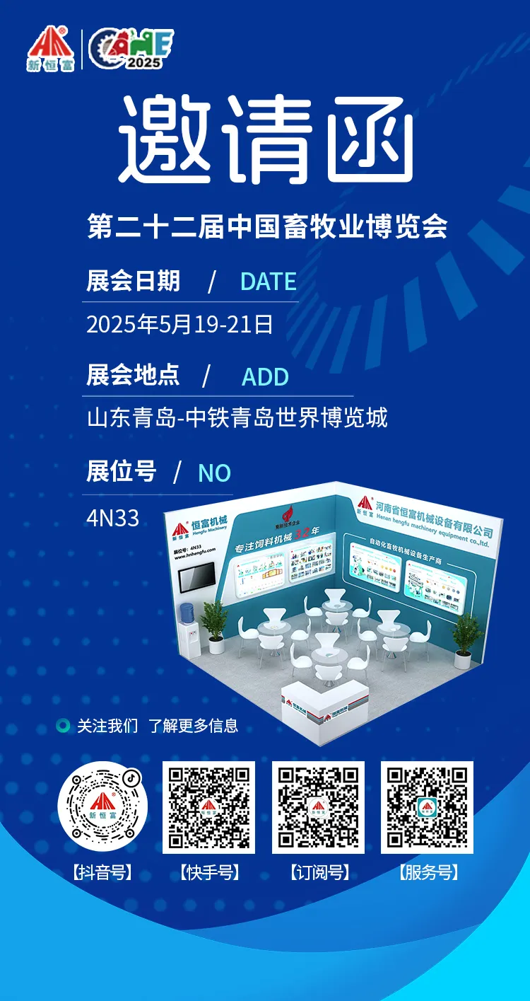 邀請函 | 第二十二屆(2025)中國畜牧業博覽會即將開幕!邀請函(hán) | 5月19日-21日,17.C19起草视频機械(xiè)邀您相聚第二十二屆(2025)中國畜牧業博覽會