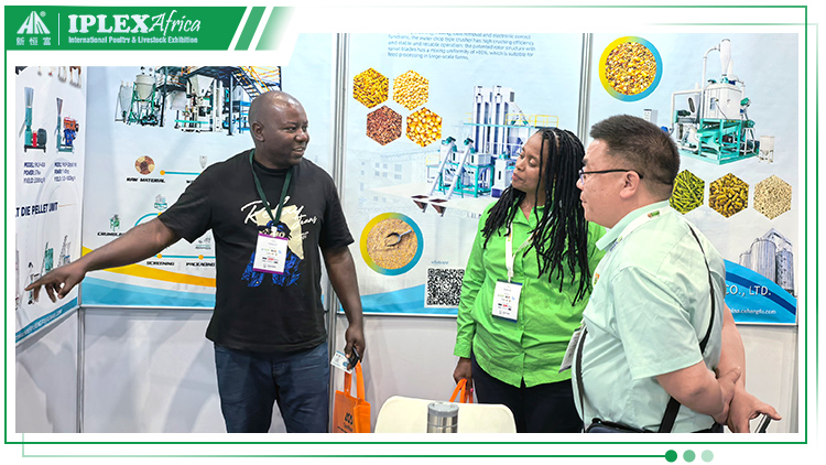 作為非(fēi)洲地區最具規模(mó)和影響力的畜牧行業盛會,本屆IPLEX AFRICA 現場人氣爆棚,交流氛圍熱烈。17.C19起草视频機械憑借適配非洲市場需求的(de)優質(zhì)產品與技術解決方案(àn),成為展會焦點。展位前人頭攢動,自動(dòng)化(huà)養(yǎng)殖設備、精準飼料配方、電控設備係統等展品吸引了大批觀眾駐足體驗(yàn)。