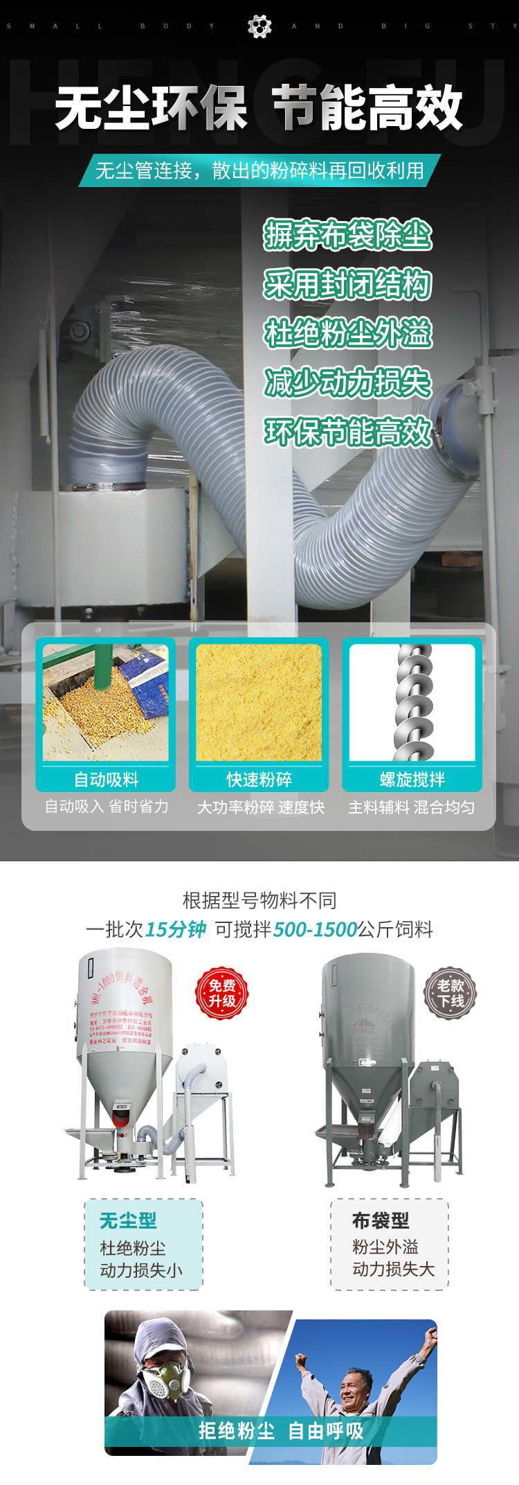 無塵飼料粉碎混(hún)合(hé)一體機